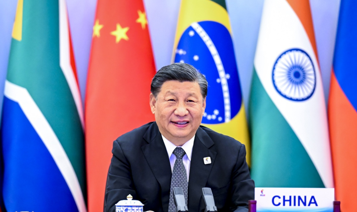 6月23日晚,国家主席习近平在北京以视频方式主持金砖国家领导人第十四次会晤并发表题为《构建高质量伙伴关系 开启金砖合作新征程》的重要讲话。 新华社记者 李学仁 摄