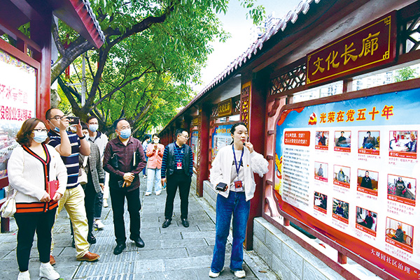 湖北省恩施市纪委监委通过举办读书班、集中座谈交流和组织现场参观等多种方式,开展党史学习教育,引导纪检监察干部发扬红色传统、传承红色基因。图为该市纪检监察干部在小渡船街道大观园社区参观学习,了解老党员的红色励志故事。蔡燕 摄
