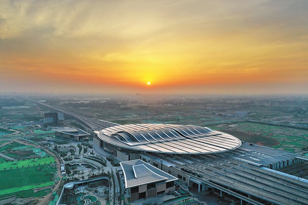 规划建设雄安新区,是以习近平同志为核心的党中央对深化京津冀协同发展作出的一项重大决策部署,是一项历史性工程,是千年大计。图为日前拍摄的京雄城际铁路雄安站。新华社记者 牟宇 摄