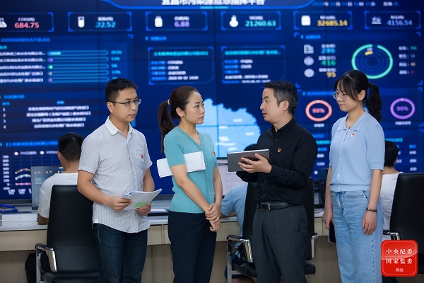 湖北省宜昌市纪委监委充分发挥案件查办治本功能,坚持“一案一剖析”,及时向有关地方、部门党委(党组)提出纪检监察建议,推动建章立制,堵塞监管漏洞。图为该市纪委监委干部在市环境监控与应急指挥中心对整改落实情况开展回访督查。唐强 摄