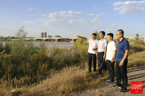 今年以来,宁夏回族自治区各级纪检监察机关开展黄河流域生态保护和高质量发展先行区建设作风专项监督。图为7月29日,该自治区中卫市纪委监委干部对黄河流域生态连城项目整改情况进行监督检查。 施扬 摄