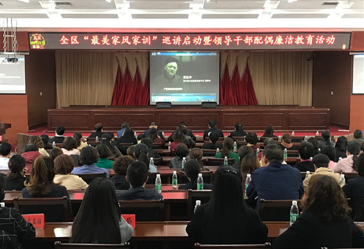 “种好家风建设这块责任田,人人身上有担子。”5月21日,林区妇联开展领导干部配偶廉洁教育活动,邀请全国最美家庭代表分享“最美家风故事”,开展“品”习总书记的家国情怀,“学”曾国藩家书,“看”警示教育片,“发”出廉洁倡议等系列教育活动,为全区150名领导干部家属定制廉政套餐,筑牢党员干部家庭廉洁防线。