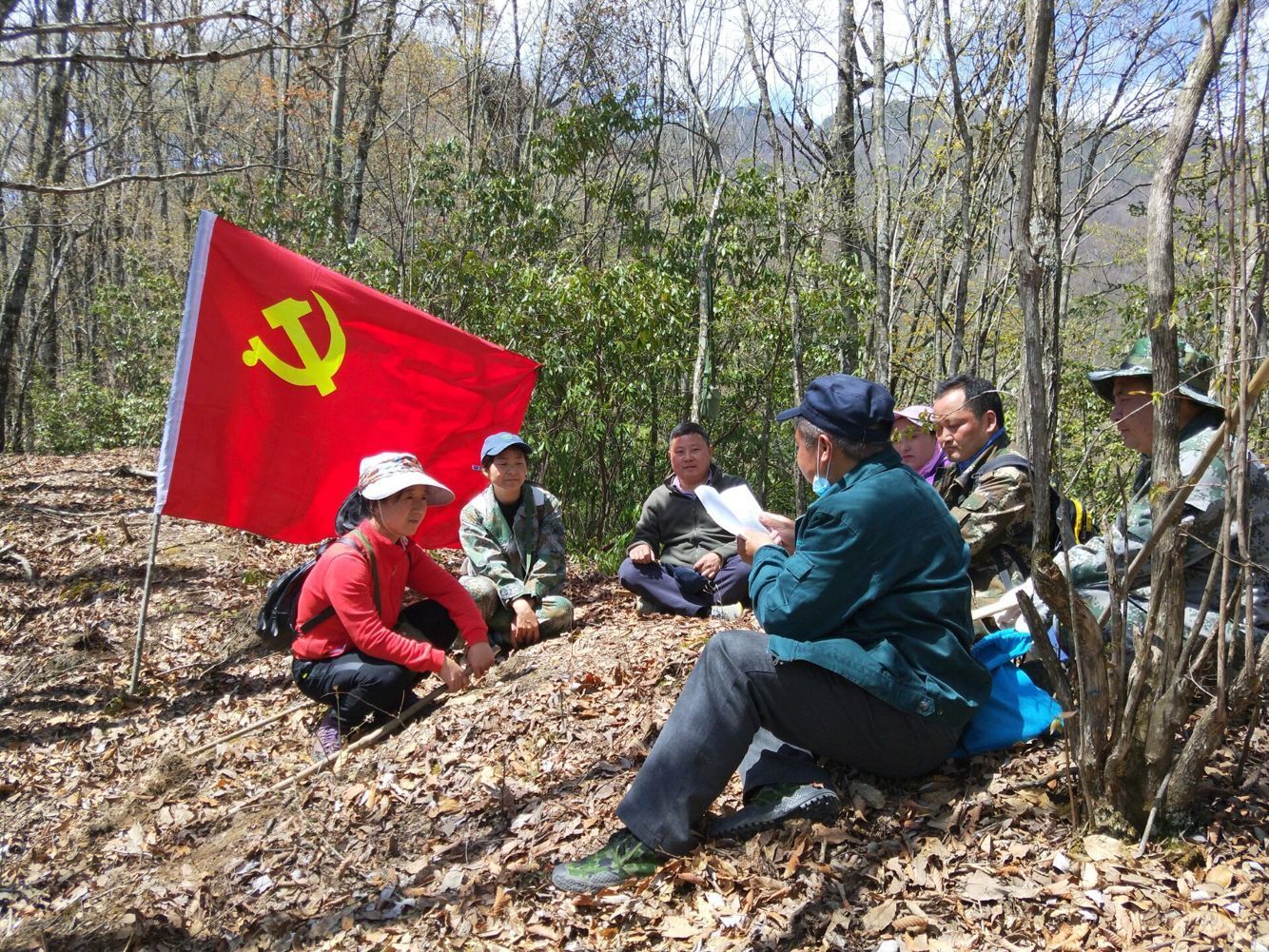 国家公园管理局把纪法学习纳入支部主题党日活动“规定”动作,以党日活动为载体,推动纪法教育向基层一线、巡护一线和扶贫一线拓展延伸,让廉洁清风吹进大山深处。图为巡护人员在山地上“纪法课”。