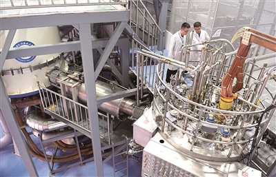 党的十九届五中全会提出,坚持创新在我国现代化建设全局中的核心地位,把科技自立自强作为国家发展的战略支撑。图为科研人员在中科院合肥物质科学研究院查看混合磁体装置。(新华社记者 刘军喜 摄)