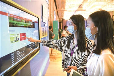 今年以来,随着“六稳”“六保”等政策措施的深入实施,国内大循环为主体、国内国际双循环相互促进的新发展格局持续推进。图为10月16日,在第128届网上广交会的线下双循环贸易促进活动上,企业代表查阅广交会网站页面。(新华社记者 邓华 摄)