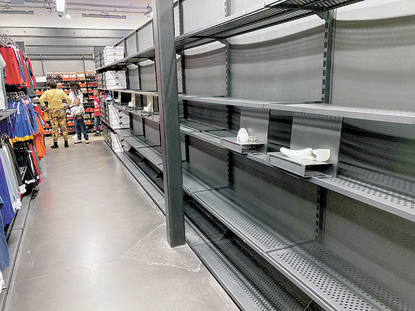 近日,在美国科罗拉多州的一家商店里,部分货架无货。 (图片来源:视觉中国)