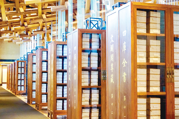 7月30日,杭州国家版本馆开馆展览启幕。图为该馆展出的《四库全书》。(图片来源:视觉中国)