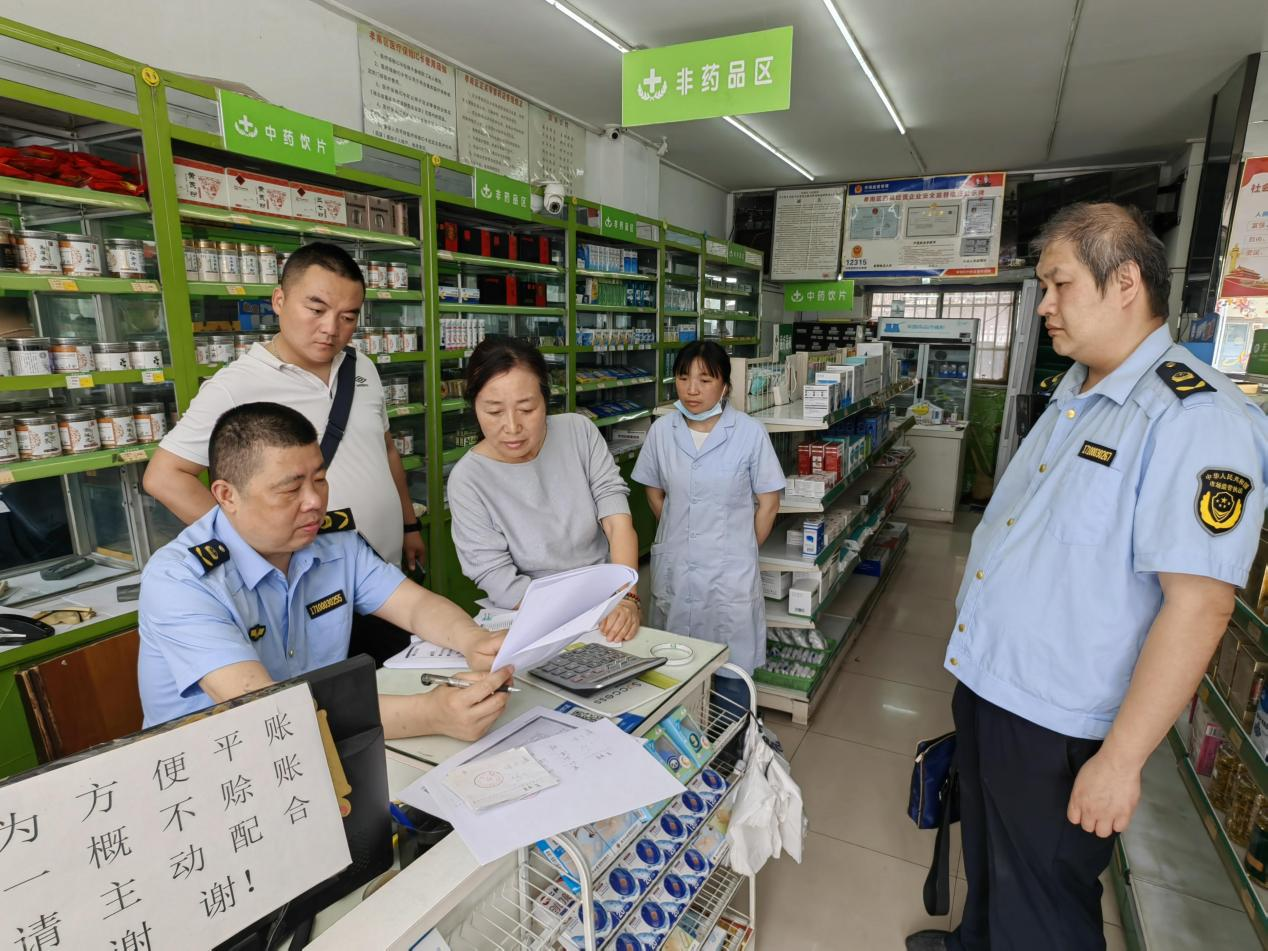 孝感市纪委监委紧盯行政执法领域,加强监督检查,压紧压实公安、市场监管等35家部门主体责任,推动持续深化“清流行动”嵌入式、跟进式监管行动,严查违规异地执法、趋利性执法以及乱收费、乱罚款等问题。图为该市联合监督检查专班到辖区药店现场查阅台账并了解相关情况。