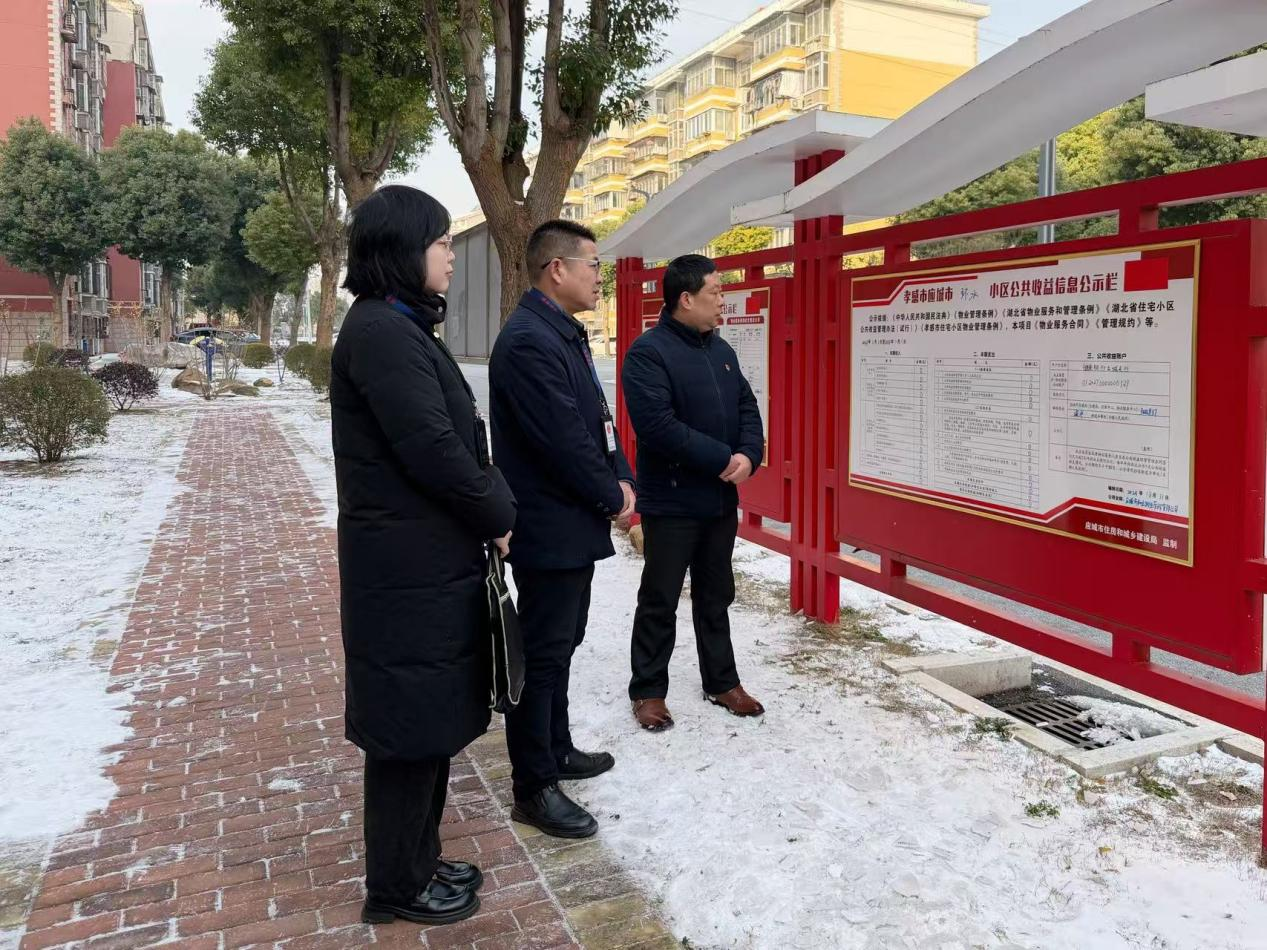 应城市纪委监委紧盯物业服务履约领域,聚焦收费公示、服务履约等关键环节,通过查阅台账、走访居民、约谈物业负责人,精准发现并推动解决物业管理存在问题,切实保障业主权益。图为该市纪检监察干部到环水花园小区走访了解物业收费情况。