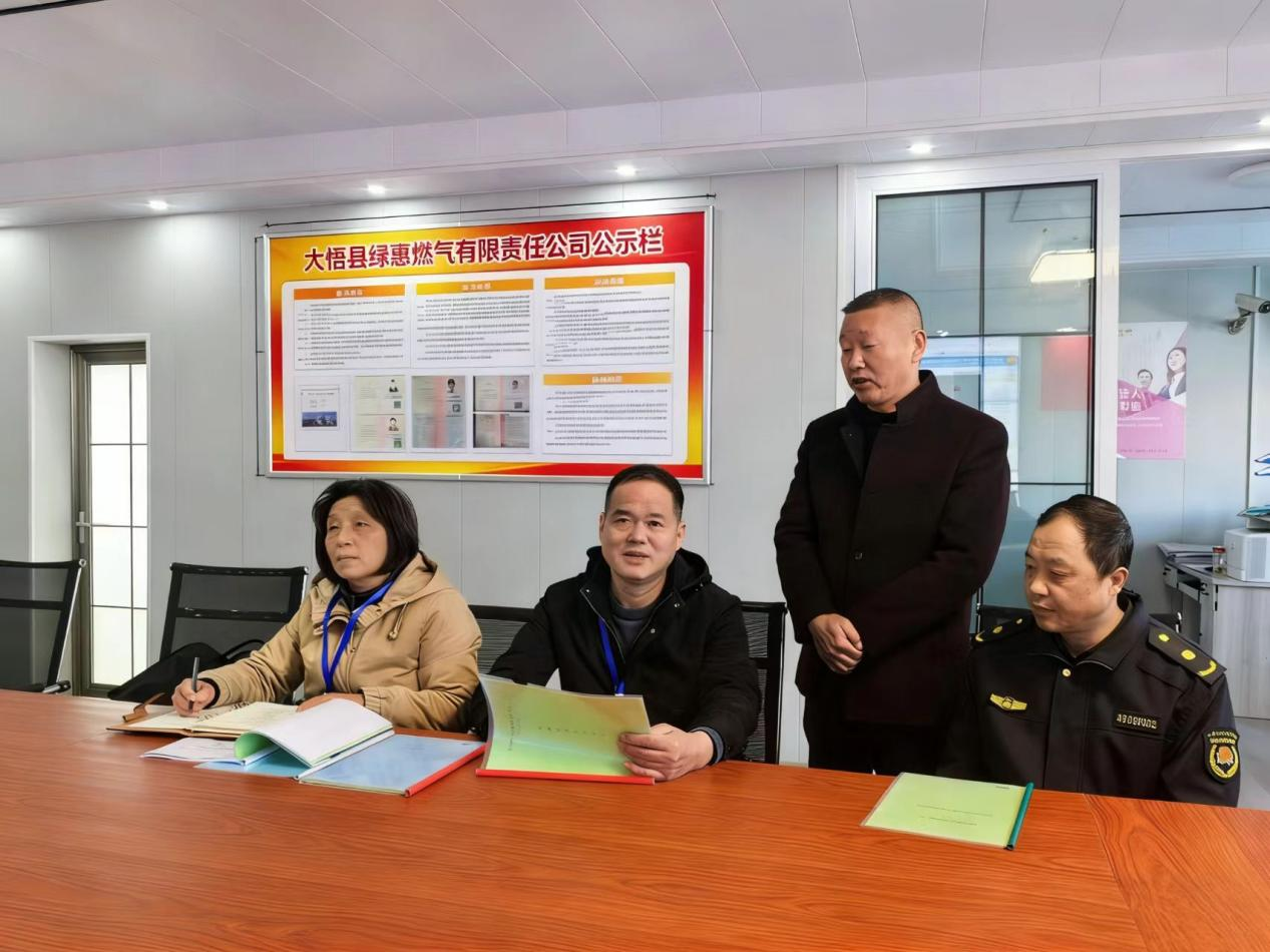 大悟县纪委监委紧盯城镇燃气安全领域,组织纪检监察干部深入一线开展监督检查,压紧压实职能部门责任,推动燃气管道老化更新改造,坚决防范燃气安全事故。图为该县监督检查组到绿惠燃气有限责任公司实地查看台账资料。