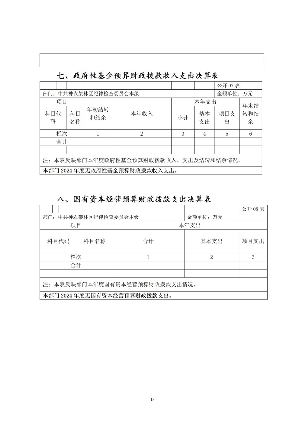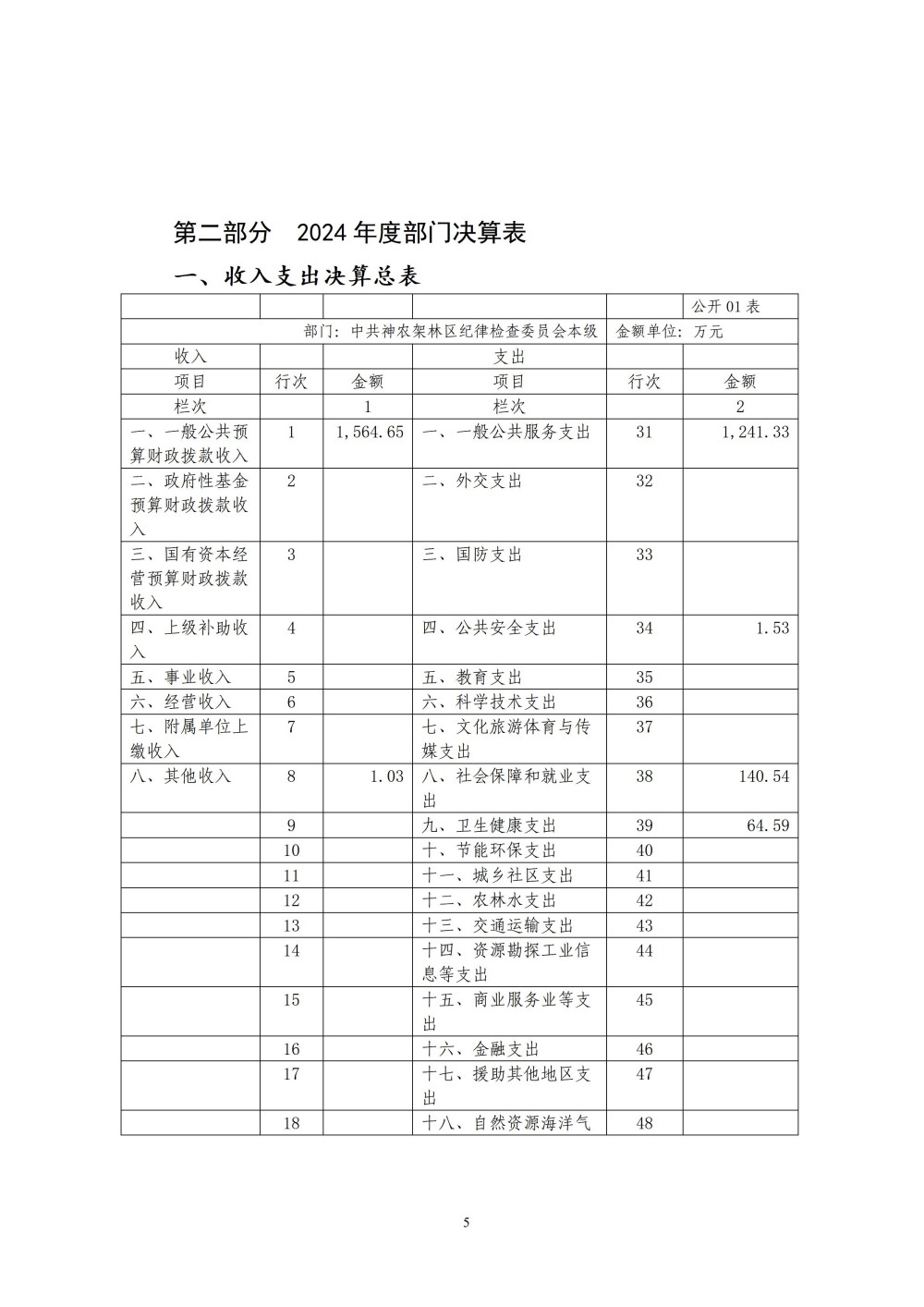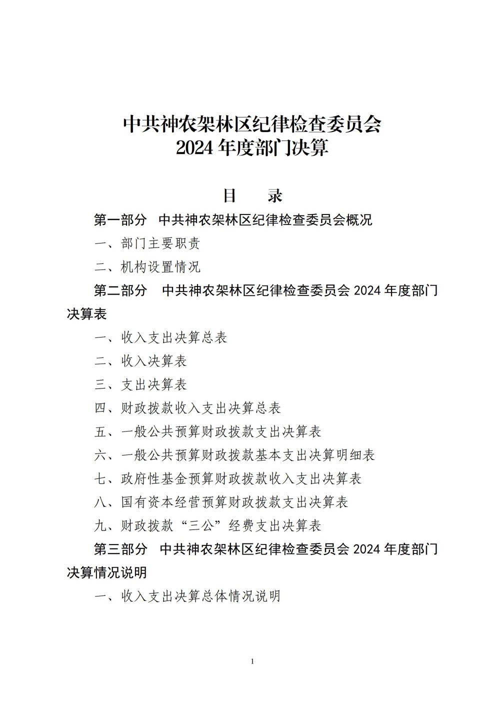 中共神农架林区纪律检查委员会2024年度部门决算信息公开