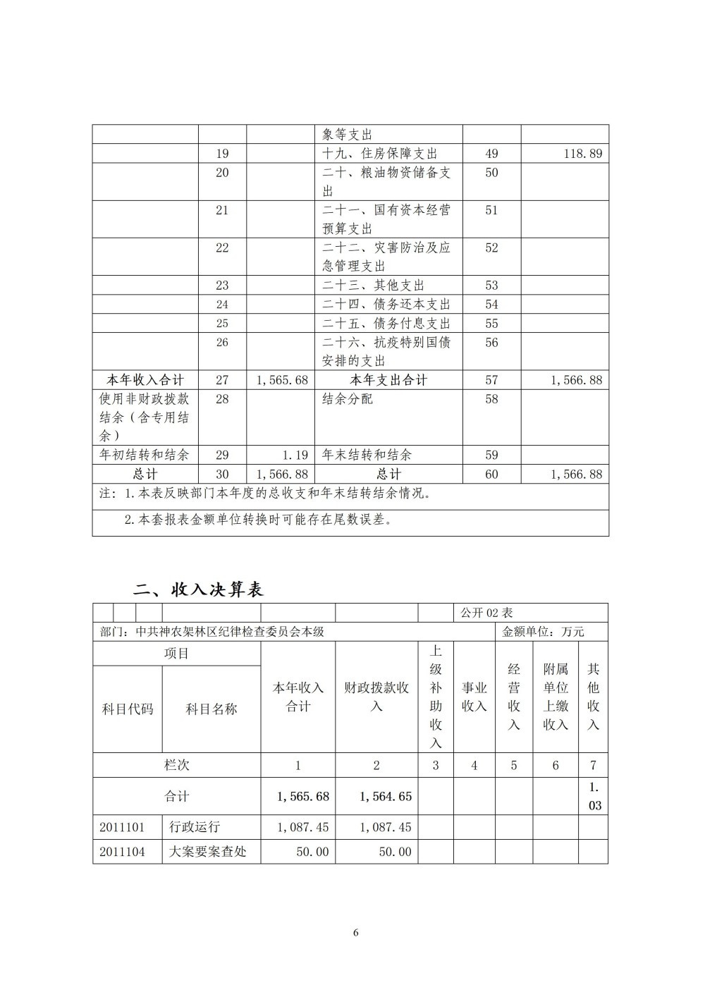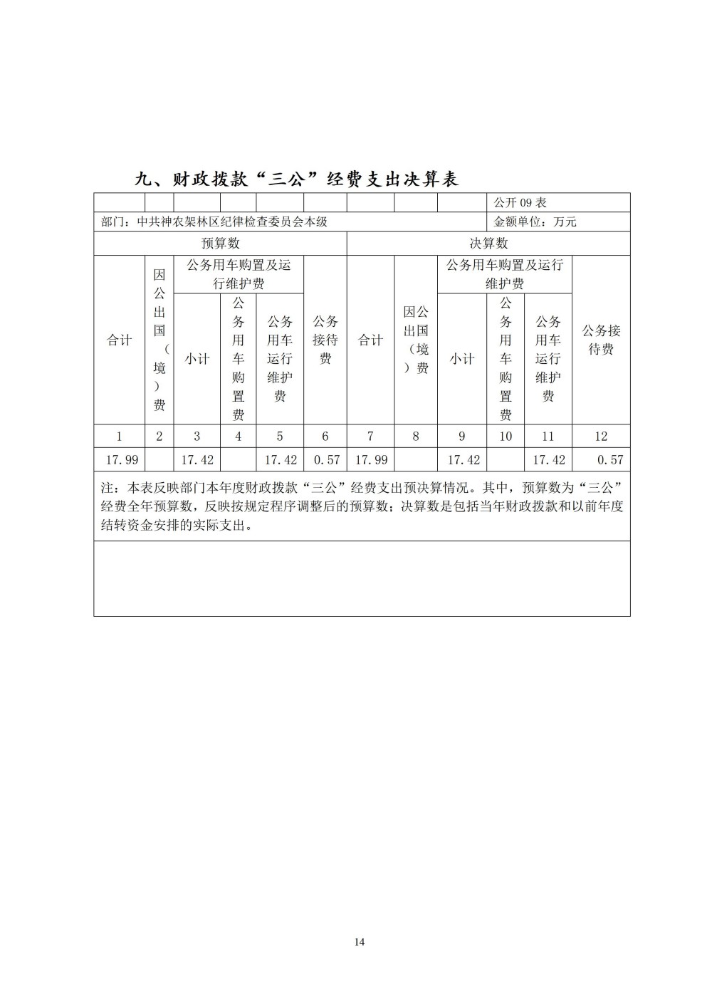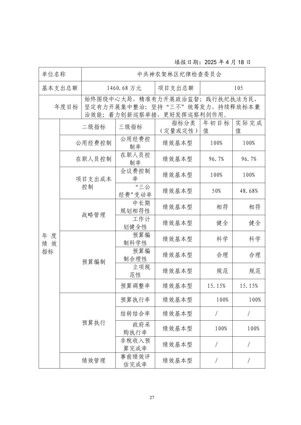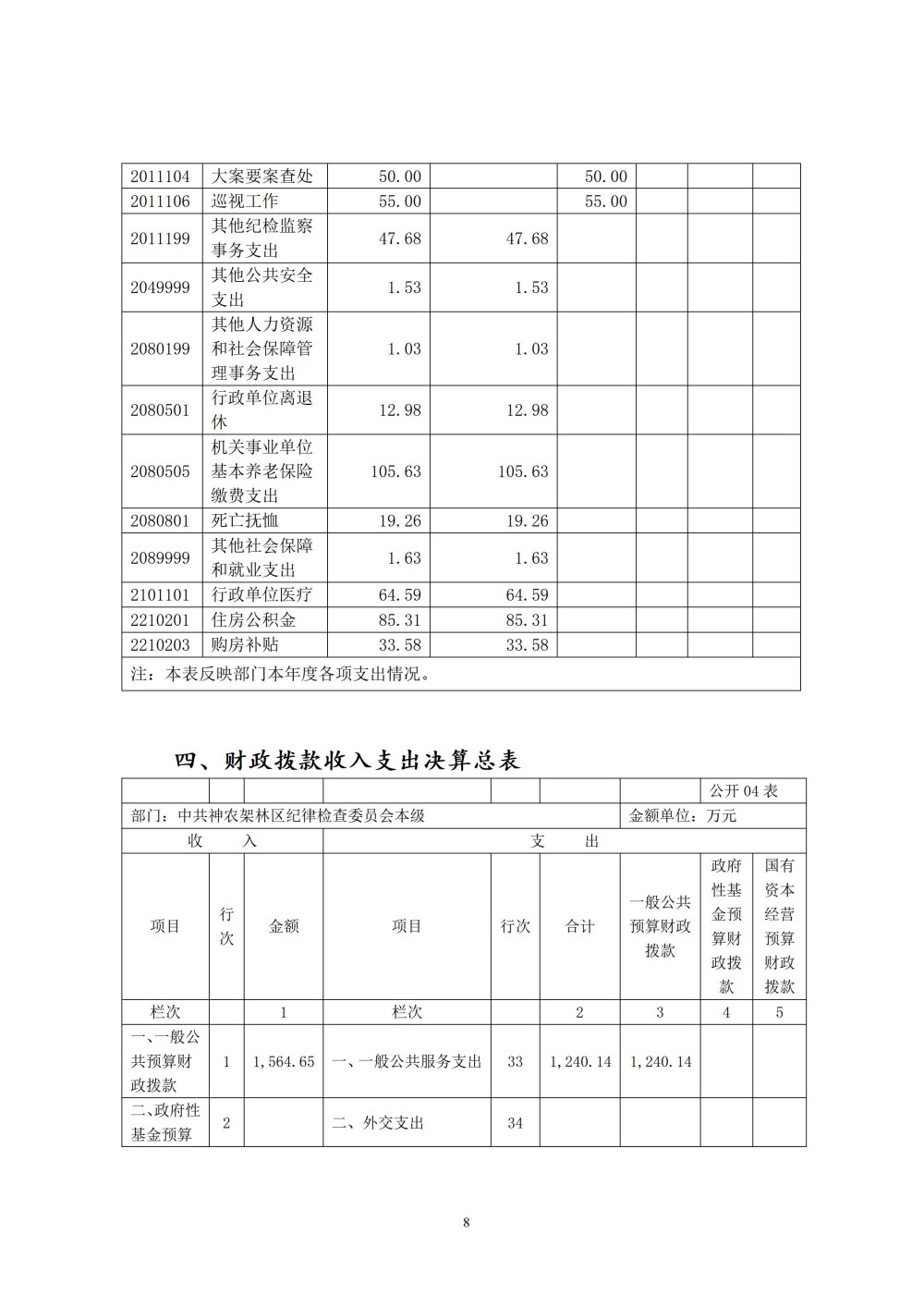 中共神农架林区纪律检查委员会2024年度部门决算信息公开